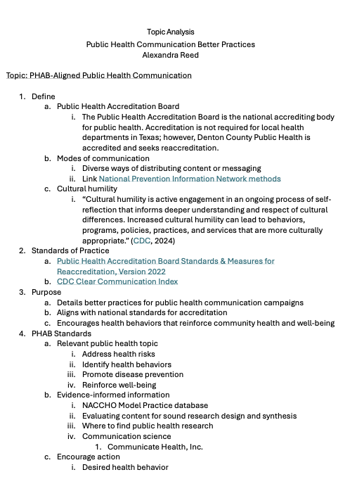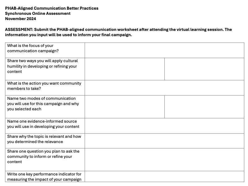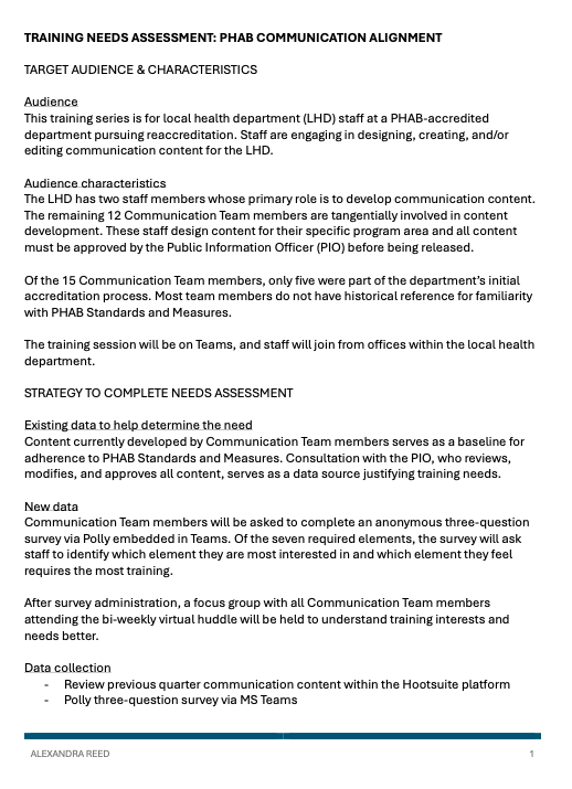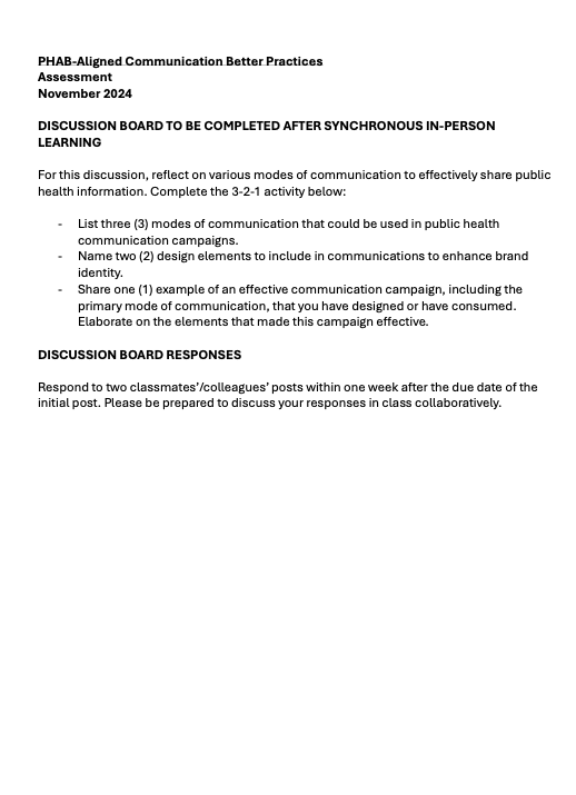 CPH 705 included the creation of a training module spanning modes of delivery.